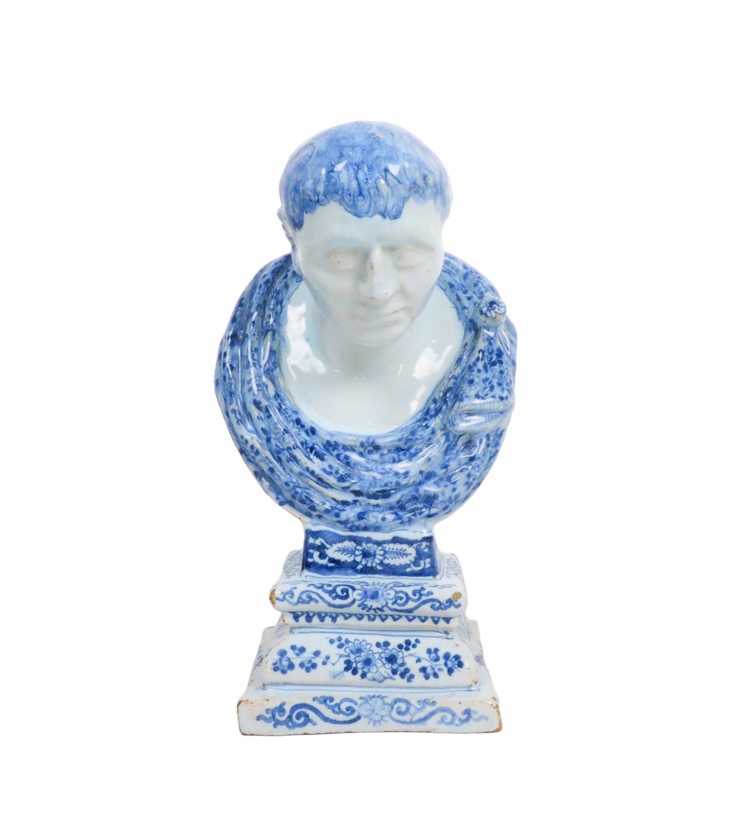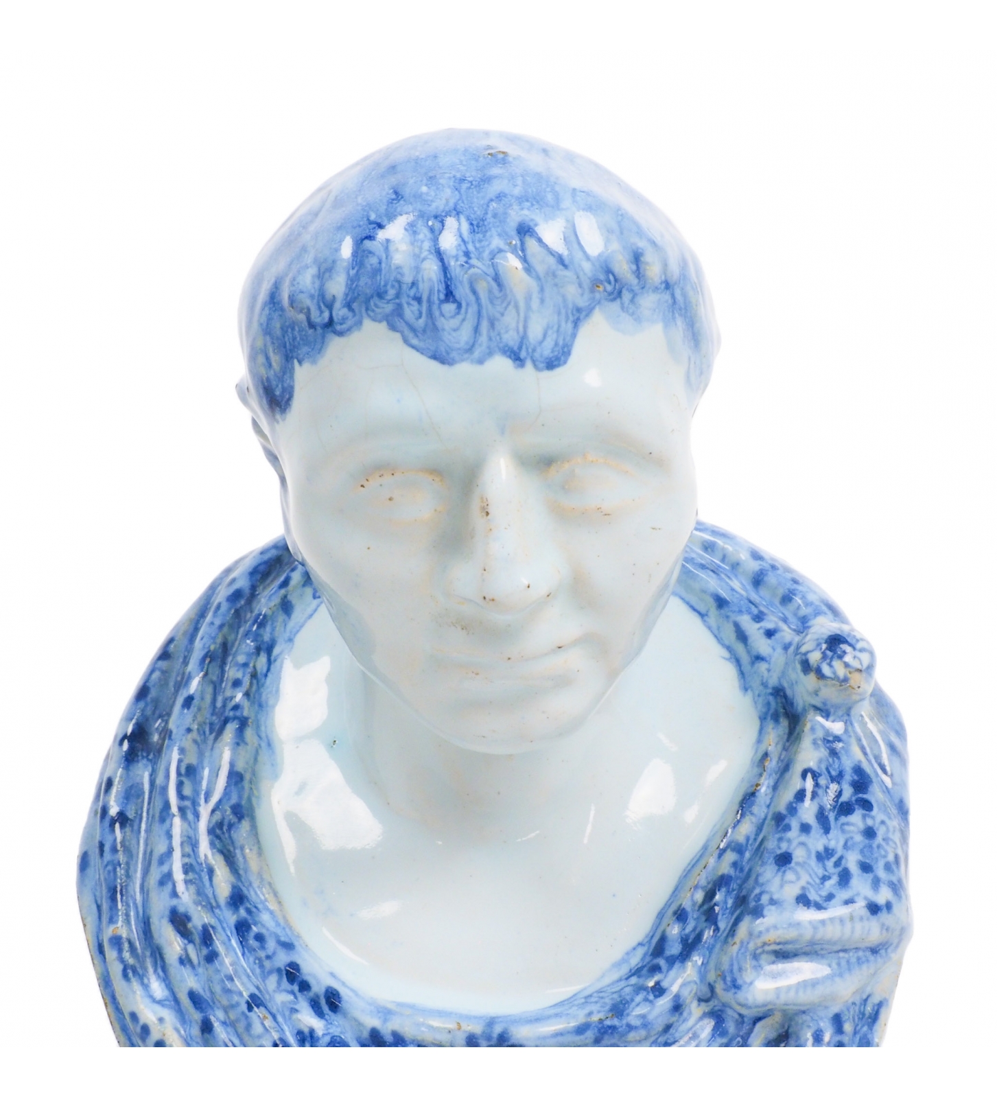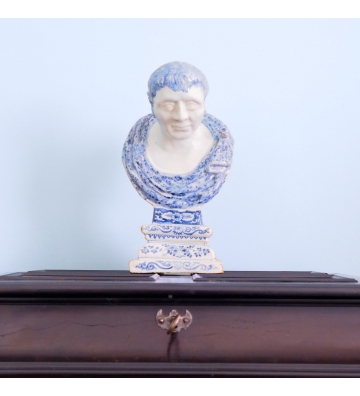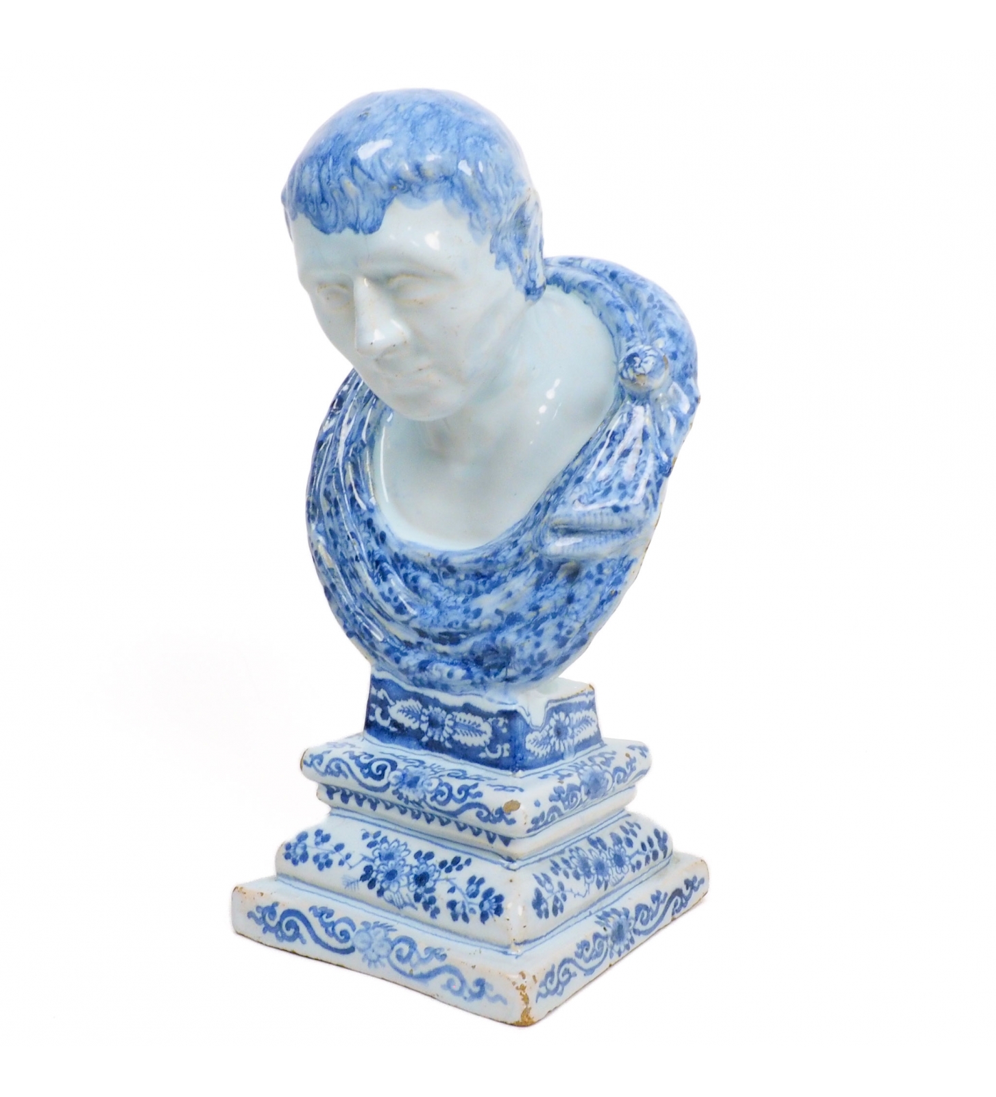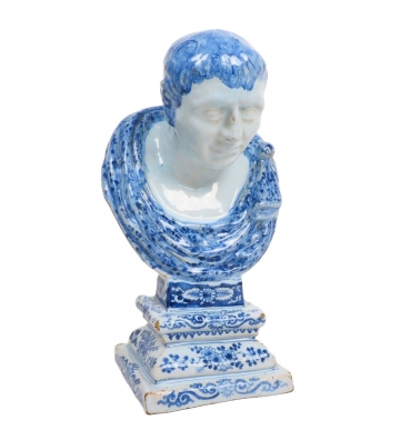 A Dutch Delft buste of a Roman emperor or statesmen wearing a toga, 17th century, around 1690, Delft, Holland.